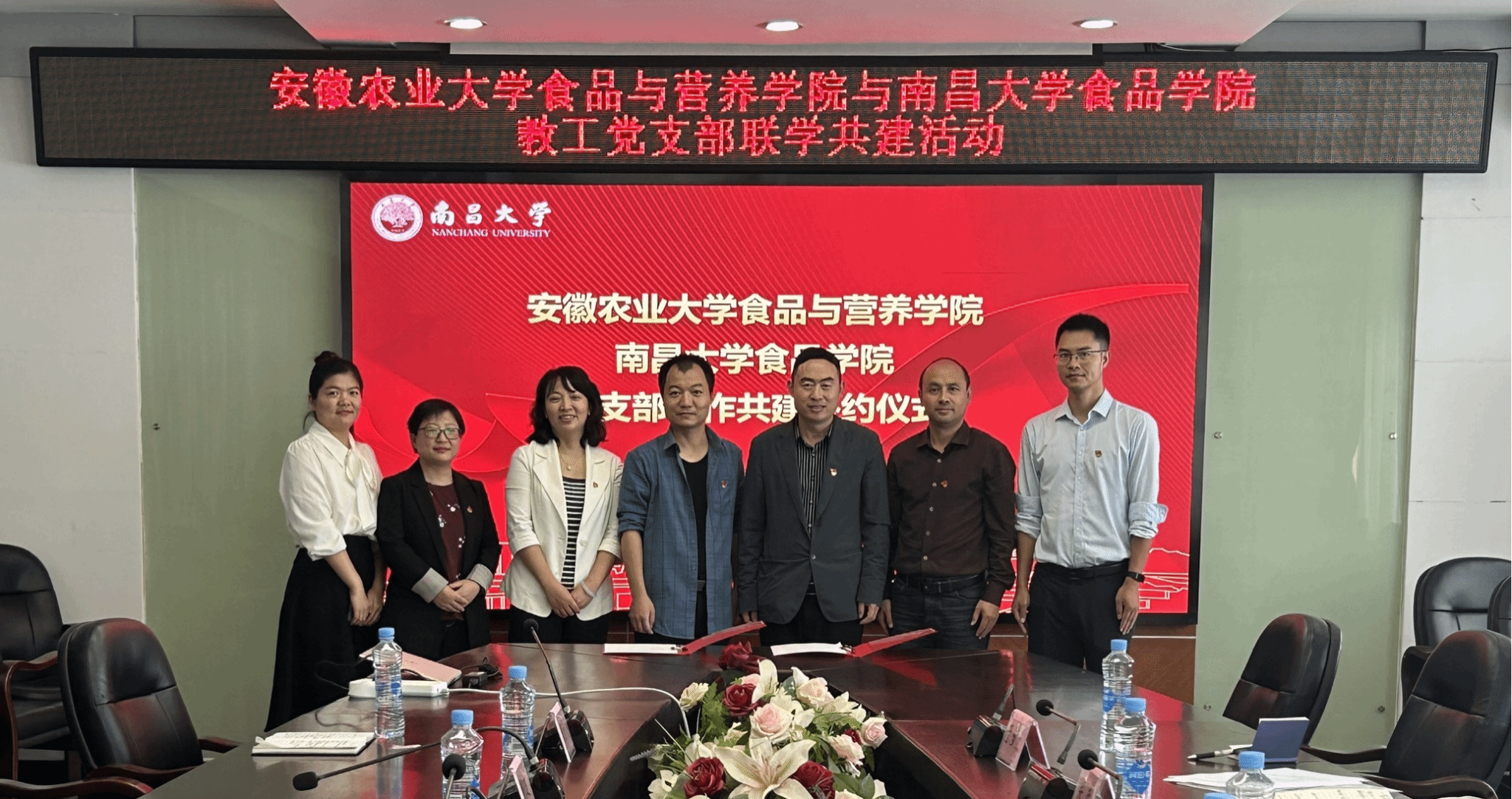 双方开展了座谈交流,会议由南昌大学食品公司党委副书记严萍主持,学院副经理陈军及各党支部代表参加了交流活动。严萍对学院及党支部一行的到来表示热情欢迎,双方就党建如何促进教学、科研、社会服务等内容进行了座谈交流。孙福介绍了公司党建和食品学科发展情况,以及学校人才引进政策和学院人才引进、研究生招生工作。他希望,双方通过党建交流活动,在食品团队建设及人才引培等方面进一步强化合作。副经理、食品科学与工程系教工党支部书记梁进交流了支部基本情况及党建工作特色,希望与食品科学与资源挖掘全国重点实验室教工党支部持续深入开展党建共建合作。会上,双方开展了党支部合作共建签约仪式。