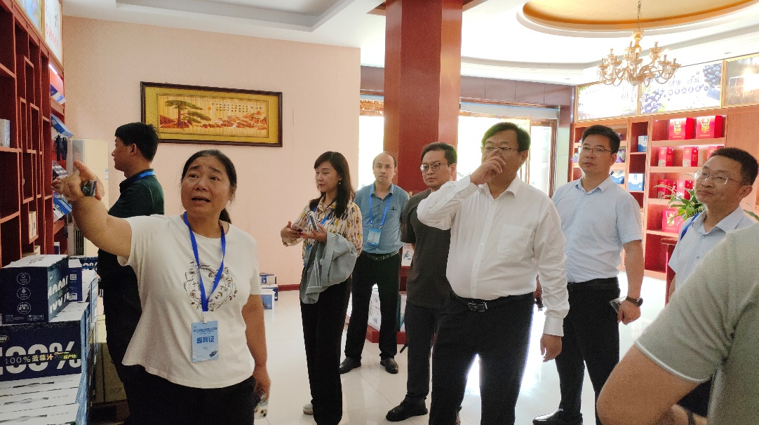 江海洋一行深入调研了科技小院依托单位、皖西南综合试验站的科研实验室以及安徽独秀山蓝莓科技开发有限公司的蓝莓深加工车间,重点询问了相关技术的产业化应用情况,并对小院师生团队研发的蓝莓果汁、果酒等产品表示高度认可。高学玲汇报了小院近年来在蓝莓精深加工技术攻关、蓝莓食品研发、公司产品等方面的工作。