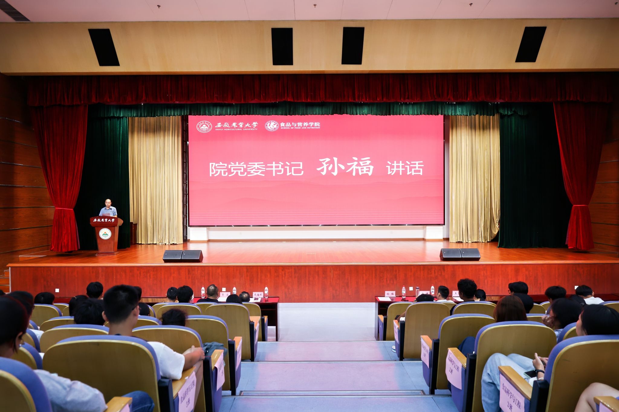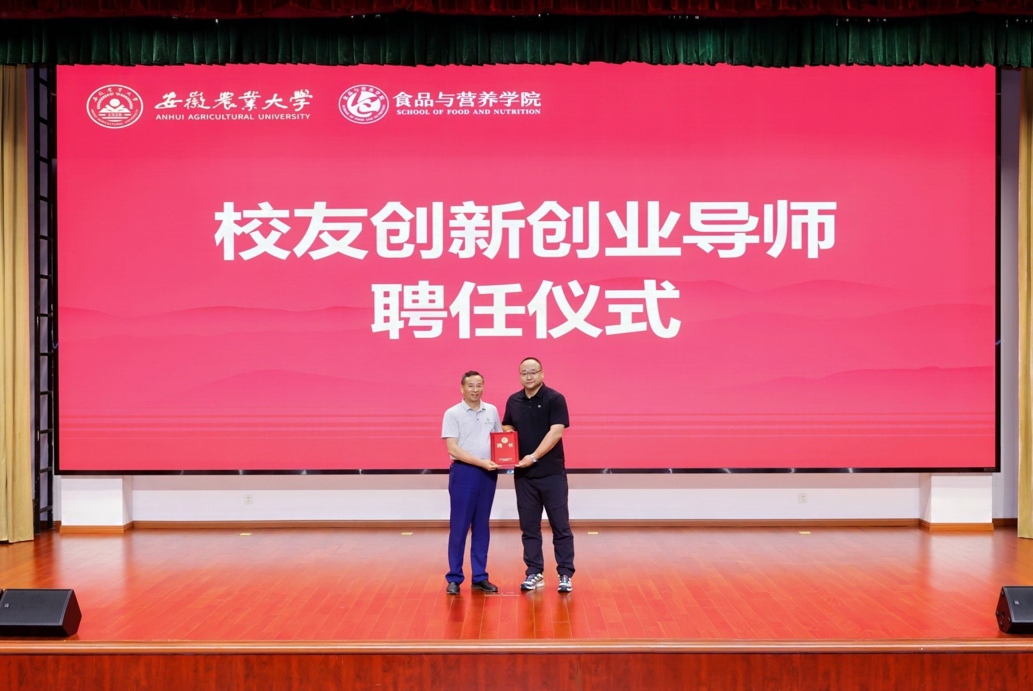 会上为员工代表、2009届食品科学与工程专业员工、安徽徽趣食品科技有限公司董事长曹启颁发了创新创业导师聘书。曹启在讲话中鼓励新生做兼具科学素养与创新精神的复合型人才,在大学阶段多参与实践、多跨界思考。2025级食品科学与工程1班袁语晨同学作为新生代表发言。会上还发布了“中国食品老员工誓词”,全体本科新生集体宣誓。