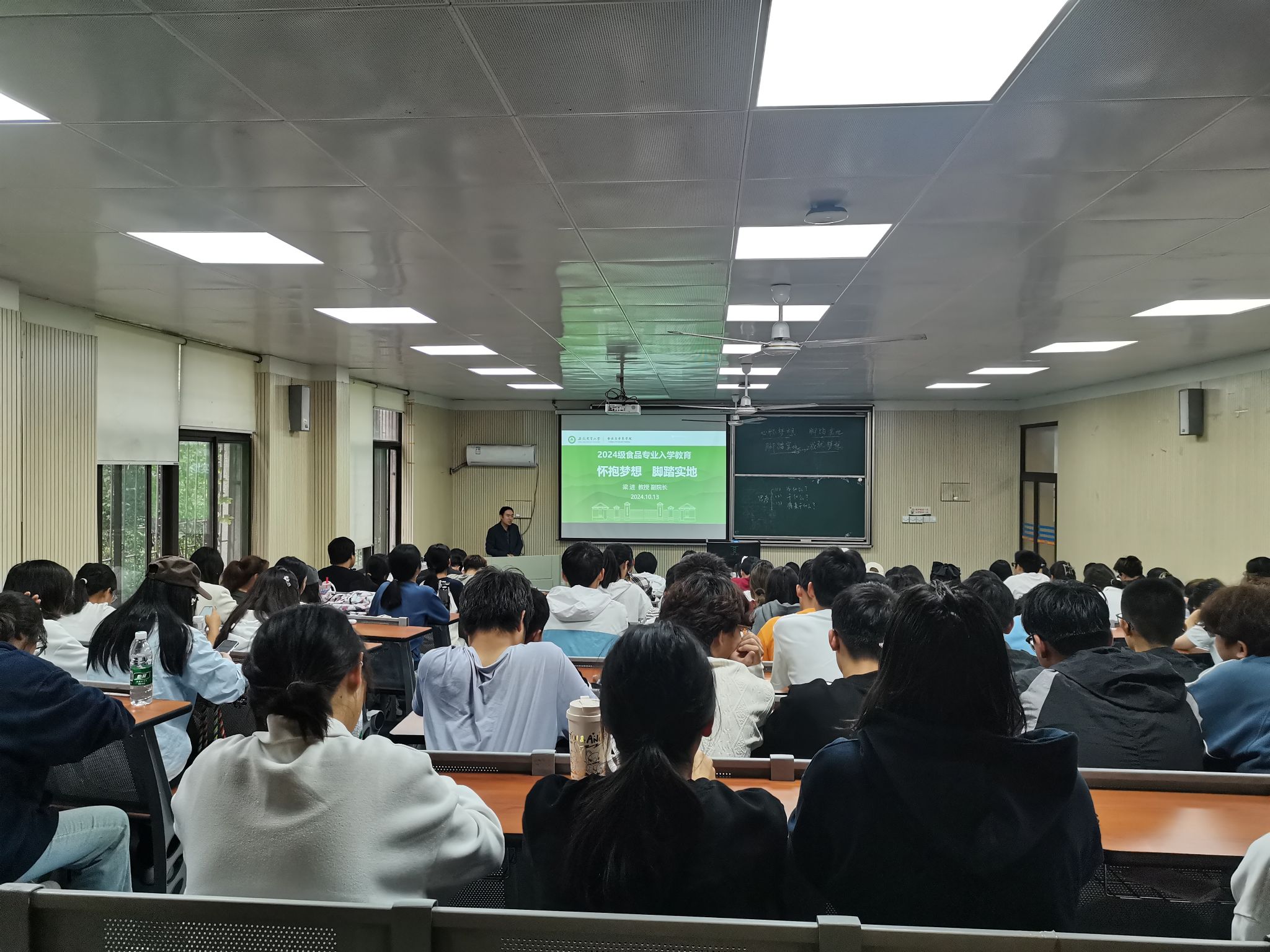 本网讯 10月13日下午,304永利副经理梁进教授为2024级食品科学与工程专业本科新生开展专业教育讲座。讲座伊始,梁进教授以“怀抱梦想,脚踏实地”为切入点,引导同学们深入思考选择所学专业的原因,在读期间的学习规划以及未来职业规划。