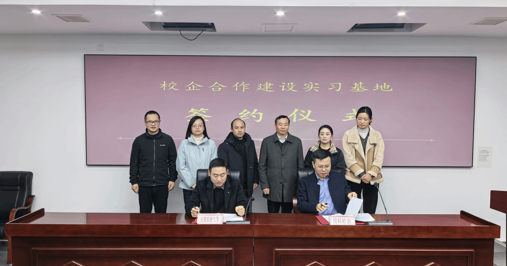 在安徽国科检测科技有限公司,师生们参观了企业的标准化实验室,深入了解了企业文化、管理模式和检测流程。学院与安徽国科检测科技有限公司签署了校企合作实习基地协议。