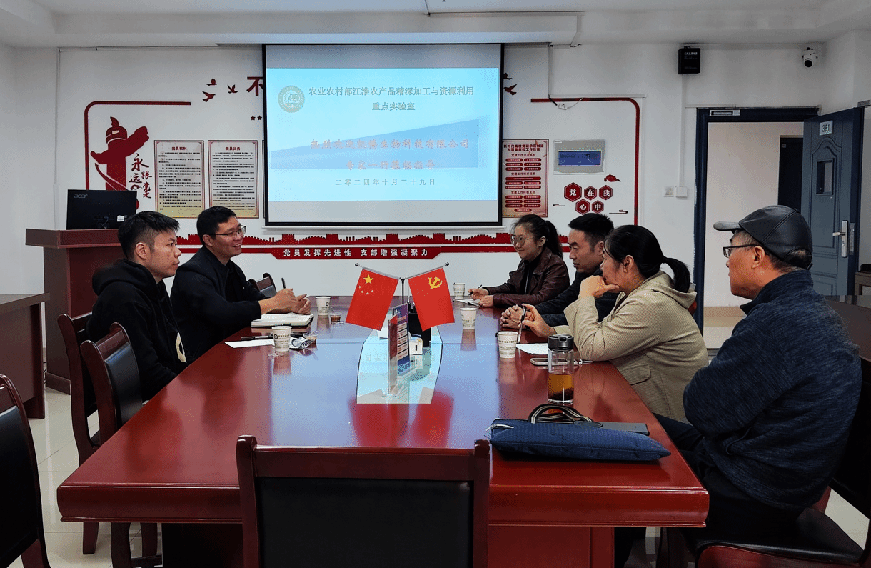 本网讯 10月29日,为进一步推进产学研深度融合,安徽加味可生物科技有限公司技术质量部经理王益友一行,赴学院农业农村部江淮农产品精深加工与资源利用重点实验室开展深入交流。座谈会由学院副经理梁进教授主持,学院高学玲教授、孙玥副教授参加座谈交流。