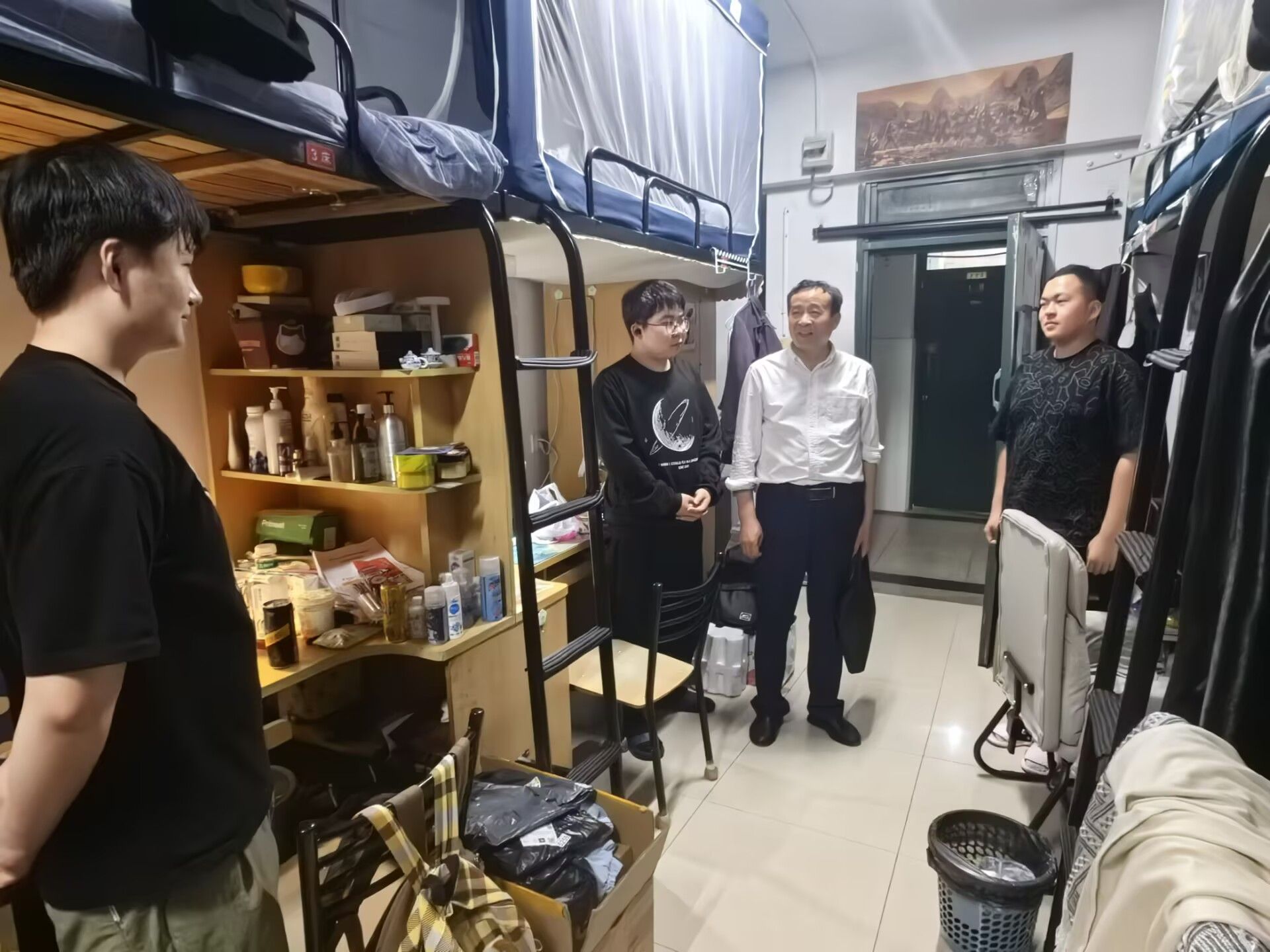 公司党政领导与辅导员集中走访了员工宿舍、2024级本科生晚自习教室,仔细查看了宿舍卫生、用电安全以及设施设备情况,围绕学习生活开展交流。老师们关切询问了同学们的五一假期安排、日常学习生活状况,认真聆听了同学们的意见和建议,鼓励大家要合理安排在校学习生活,提前做好职业规划,积极提升自身综合能力,并嘱咐同学们要提升饮食安全、宿舍用电安全、消防安全、网络安全、防范电信诈骗等安全意识,遇到问题及时向学院反馈。