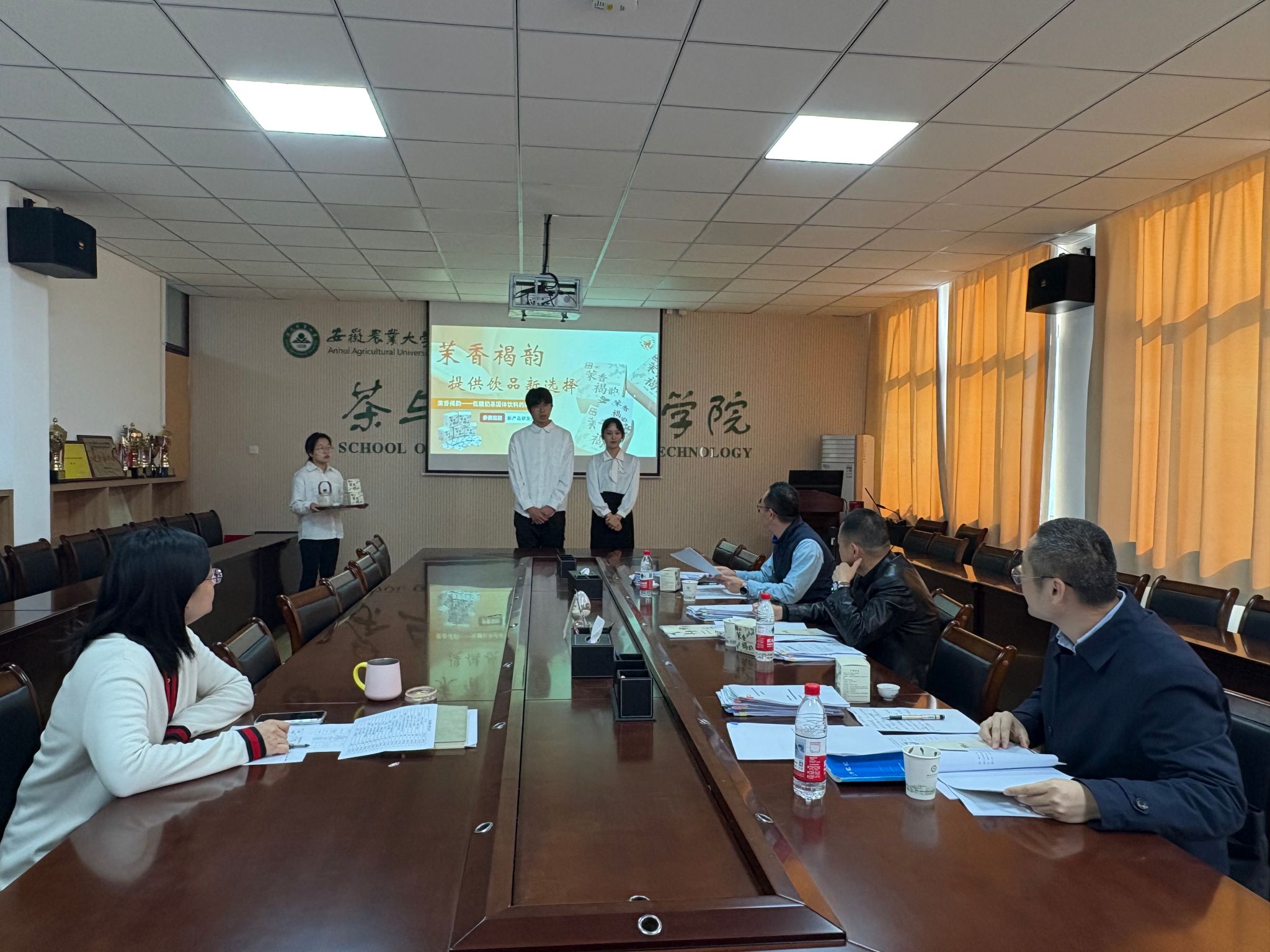 答辩现场气氛紧张而热烈。各参赛团队图文并茂地阐述了作品的设计理念、技术路线、创新特色及市场应用前景。评委专家从创新性、科学性、可行性、现场表现等多个维度对每个项目进行了评审,并就项目中存在的关键问题与同学们进行了深入的交流和探讨,提出了许多建设性的指导意见。最终推荐排名前列的8项作品代表学校参加2025年安徽省老员工食品设计创新大赛决赛。