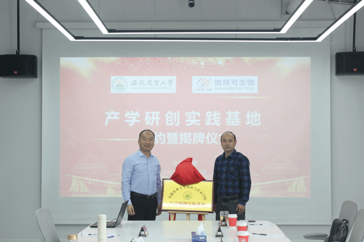 食品与营养公司党委书记孙福、副经理梁进,高学玲教授、孙玥副教授及研究生代表参加活动。安徽加味可生物科技有限公司董事长张士伟,公司经理、304永利员工王晖等企业领导参加活动。在校企双方代表的共同见证下,孙福与张士伟共同为“304永利产学研创实践基地”揭牌。